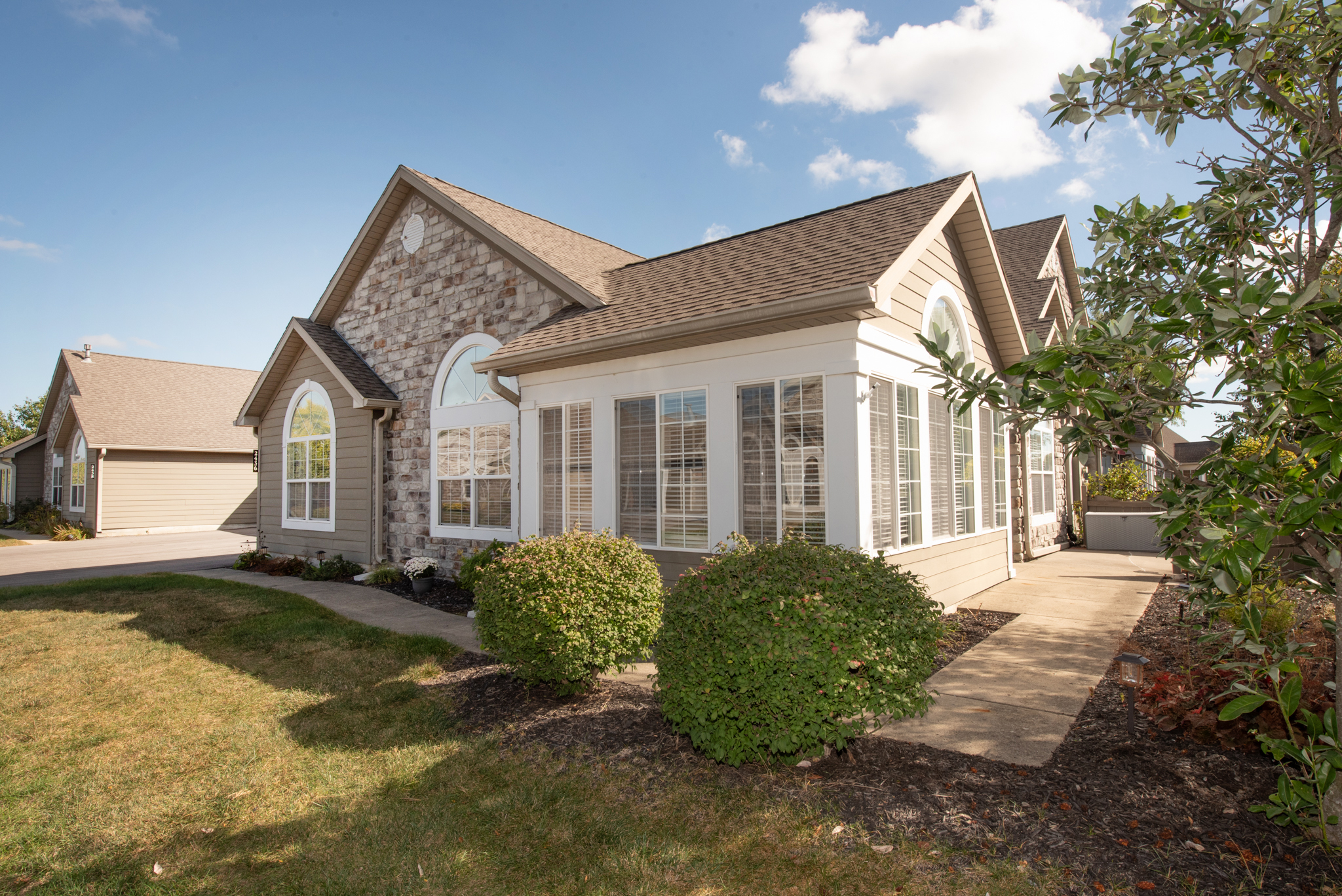 A rare opportunity in coveted Ravenswood on the southeast side of Lafayette, this beautiful two-bedroom, two-full-bathroom condo has all the amenities. An open floor plan on 1,712 sq. ft., the home offers plenty of space, with the first bedroom adjacent to the vaulted-ceiling great room, with an extra sun room and den (which could double as an extra guest room) nearby. And all on the convenience of a single floor. This is low-maintenance living made easy. Among the highlights: Newer flooring (carpeting and planks), refrigerator and dishwasher, along with garage heating and fan, with zoned HVAC.