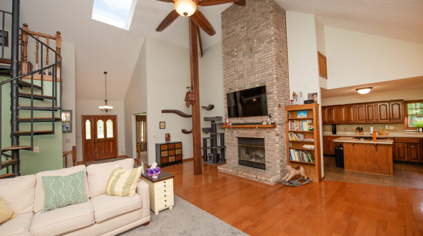 Your own private oasis at 8400 Kirkridge Bluff, a stunning custom-built home on more than four acres that slopes down with access to the Wildcat Creek. This home is a rare find, with more than 4,500 finished sq. ft. — it feels even bigger — including four bedrooms, three full baths and a spiral staircase to a second-floor loft. On the main floor is an incredible open great room, with a vaulted ceiling leading to the loft, an open kitchen and breakfast nook, plus a spacious dining room and den. The first bedroom opens to a closed in deck that overlooks incredible scenes toward the Wildcat. The basement includes tons of open finished space, including a separated multi-use rec room and a fourth bedroom. Walk out the back and take a trip down to the Wildcat. Highlights: A newer roof and skylights (two years old), newer gutters, new deck (two years), new dishwasher (six months), reverse osmosis system, basement carpet (two years), tankless water heater (four years), newly planted fruit trees.